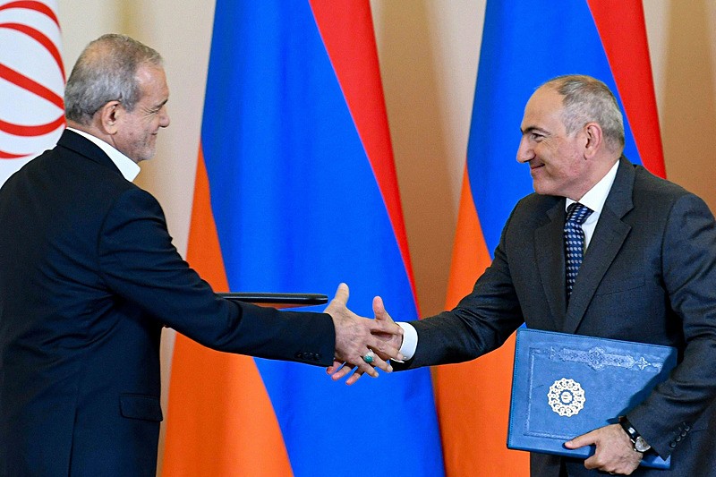Azerbaycan Cumhurbaşkanı İlham Aliyev ve Ermenistan Başbakanı Nikol Paşinyan, ABD Başkanı Donald Trump ile attıkları imzanın ardından Ermenistan’a gitti. Trump, Paşinyan ve Aliyev, Zengezur Koridoru’nun açılması için imzaları atmıştı. Zengezur konusunda büyük panik yaşayan ve peş peşe olumsuz açıklamalar yapan Pezeşkiyan Paşinyan ile Erivan'da bir araya gelirken görüşme sonrası iki ülke arasında çeşitli alanlarda 10 mutabakat zaptı imzalandı. Paşinyan'ın Pezeşkiyan'ı Farsça bir cümleyle karşılaması dikkat çekti.