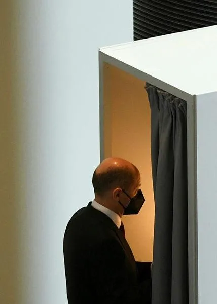 Federal Meclis Başkanı Baerbel Bas başkanlığında toplanan Federal Meclis'te yapılan gizli oylamada, Scholz, ilk turda oylamaya katılan 707 milletvekilinden 395'inin oyunu aldı.