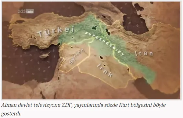 Alman Devlet Televizyonu ZDF'nin Info kanalında, üç gün önce "Baskı, terörizm ve ihanet altındaki Kürtler" başlıklı bir belgesel yayınlandı. Erbil, Türkiye, Almanya, Suriye ve Irak'taki çeşitli yerlerde çekilen görüntüler, Rize'nin altında başlayıp bir yandan Basra, diğer yandan Hatay'a kadar uzanan geniş bir "sözde Kürt bölgesi" haritası altında gösterildi.