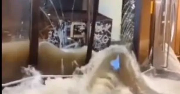 Frankfurt Südbahnhof'taki yürüyen merdivenlere su kütleleri çarptı.