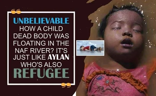 Arakan'da devam eden çatışmalardan kaçıp, komşu Bangladeş’e girmeye çalışan Müslüman bir ailenin bebeği, Naf nehrinde botun batması sonucu hayatını kaybetti. Naf nehrinde botun batmasıyla hayatını kaybeden çocuğun fotoğrafı sosyal medyada ise büyük yankı buldu.