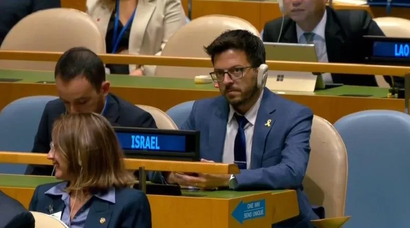 Başkan Recep Tayyip Erdoğan, 79. BM Genel Kurulunda 14. kez tarihi bir konuşma yaparken İsrailli delegelerin resmen yüzü düştü. Başkan Erdoğan BM kürsüsünde İsrail’in Gazze’deki soykırımını dünyaya haykırıp yaptırım çağrısı yaparken İsrailli delegelerin yüz ifadeleri dikkat çekti.