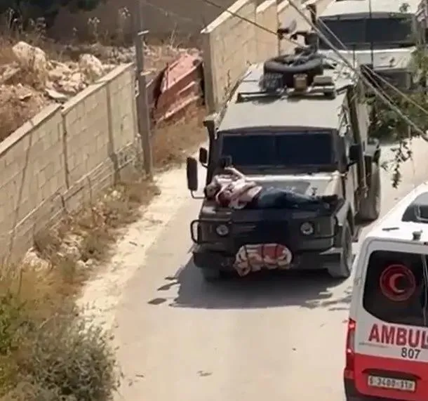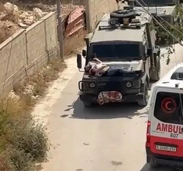 Filistinli yaralı gencin askeri cipin kaput kısmına bağlanmış halde götürüldüğü görüntüler sosyal medyaya da yansıdı. Görüntülerde, askeri cipin, iki ambulansın arasından geçip gittiği görüldü.