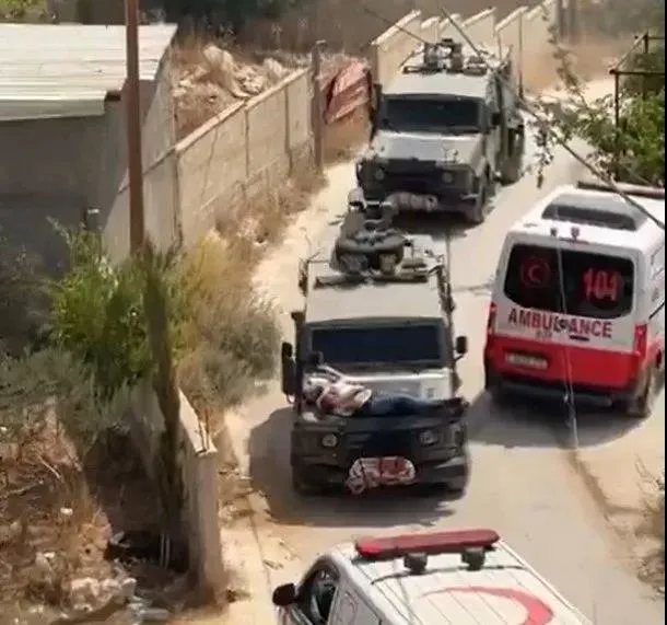 Katil İsrail askerleri, geçtiğimiz günlerde işgal altındaki Batı Şeria'nın Cenin kentine düzenledikleri baskın sırasında vurarak yaraladıkları 3 Filistinliden birini, askeri aracın kaput kısmına bağlayıp canlı kalkan olarak kullandı.