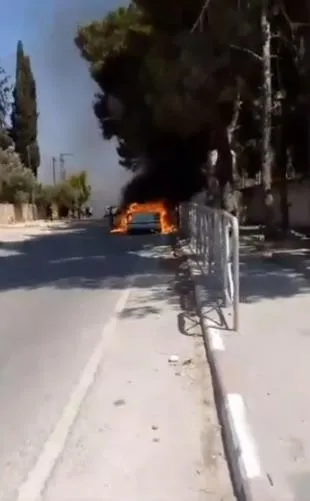 Nablus'un güneyindeki Burin köyünde Filistinlilere ve mülklerine saldıran İsrailli grup, bir aracı ve tarım arazilerini ateşe verdi.