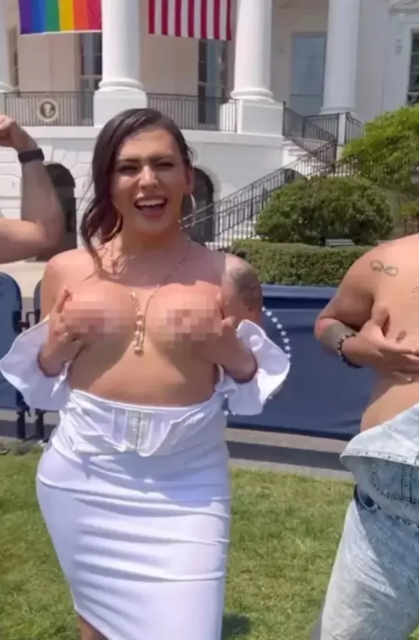 Transseksüel isim, Biden ile el sıkıştıktan sonra üstünü çıkarttı. Skandal görüntüler sosyal medya kullanıcıları tarafından tepki topladı.