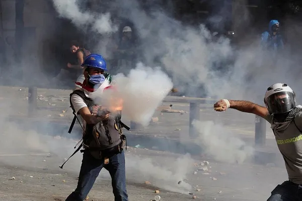 Başkentteki Şehitler Meydanı'nda bir araya gelen protestocular parlamento binasına yürümek istedi. Polis, göstericilerin yürüyüşüne engel olmak için bölgeyi beton ve demir bariyerler ile kapatırken, bariyerleri aşmak isteyen eylemcilere biber gazı ile müdahale etti. Göstericiler ise polise taş atarak karşılık vermesi ile protestoda tansiyon yükseldi.