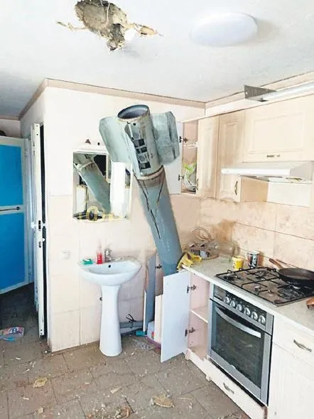 Harkov'da Rus füzesi, mutfağa hançer gibi saplandı. O sırada mutfakta kimsenin olmaması ve roketin patlamaması nedeniyle can kaybı yaşanmadı.