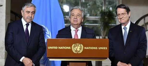 Guterres, BM Cenevre Ofisi'nde yapılan Kıbrıs Konferansı'na verilen arada, Kuzey Kıbrıs Türk Cumhuriyeti (KKTC) Cumhurbaşkanı Mustafa Akıncı ve Rum lideri Nikos Anastasiadis'i de yanına alarak basın toplantısı düzenledi.