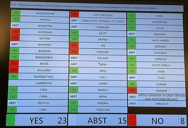 İsrail aleyhindeki karar tasarısı 15 çekimser, 8 aleyhte, 23 lehte oyla kabul edildi.