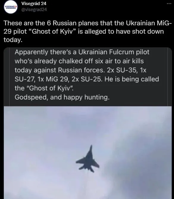 Eski Ukrayna Cumhurbaşkanı Petro Poroşenko ve batı medyasının paylaşımlarında, 'Kiev'in Hayaleti' adlı Ukraynalı savaş uçağı pilotunun, 6 Rus uçağını düşürdüğü iddia edilmiş ve Kiev'in Hayaleti'nin kim olduğu çokca araştırılmıştı.