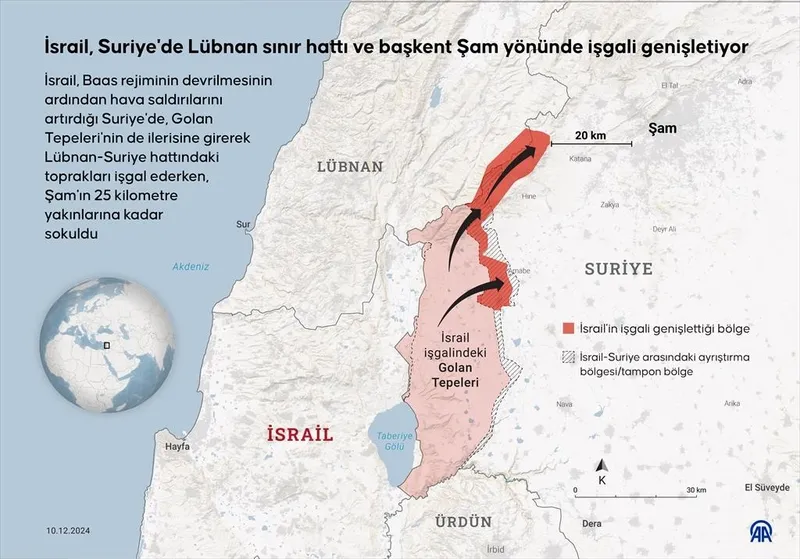 Netanyahu, 1974 yılında Suriye rejimiyle yapılan anlaşmanın rejimle birlikte sona erdiğini duyurdu. Bunun ardından İsrail güçleri, 1974 BM Ateşkes Hattı'nı geçerek işgal altındaki Golan Tepeleri'nden hareket etti. İsrail ordusu, tampon bölgedeki El Hamdiye'ye ve rejim unsurlarının Hermon Dağı'nda terk ettiği mevzilere girdi. Uzmanlar, İsrail güçlerinin tampon bölgeyi Suriye içlerine doğru farklı safhalarda genişletmeyi planladığını düşünüyor.