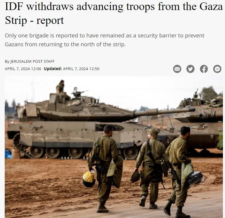 Askeri radyonun pazar günü bildirdiğine göre, IDF Gazze Şeridi'nden ilerleyen tüm birliklerini geri çekti. Üç tugaydan oluşan 98. tümen, dört aylık operasyonların ardından Şerit'ten çekildi