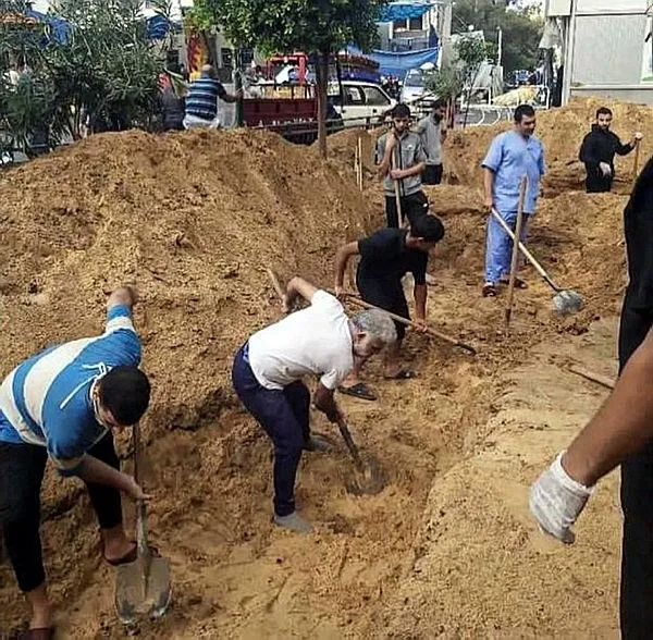 17: 20 Gazze'deki Sağlık Bakanlığı: Şifa Hastanesi'nin avlusunda yüzlerce ceset birikti.