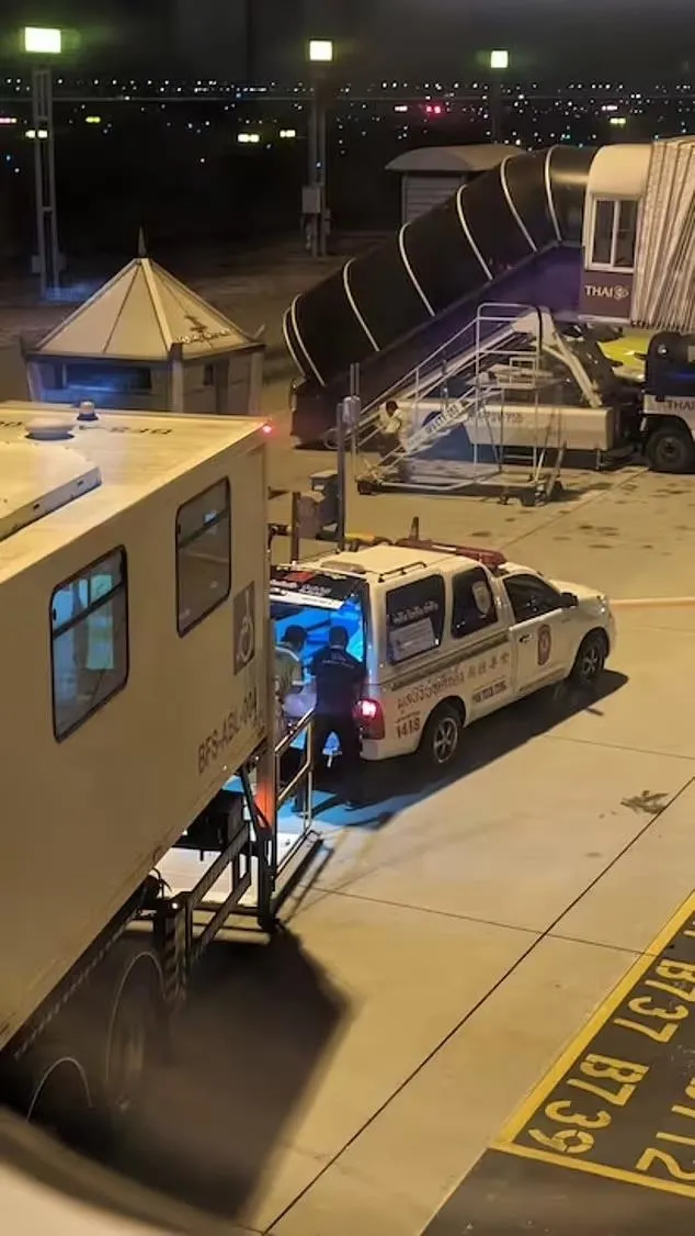 63 yaşındaki adamın karısı, uçağa binerken kabin ekibine kocasının kendisini iyi hissetmediğini çünkü Bangkok Havalimanı'nda uçağa yetişmek için koşmak zorunda kaldıklarını söylemişti. Çiftin hemen arkasında kocası ile birlikte oturan 55 yaşındaki sağlık uzmanı Karin, "Daha sonra bir uçuş görevlisi ona iyi olup olmadığını sordu, çok endişeliydi." dedi.