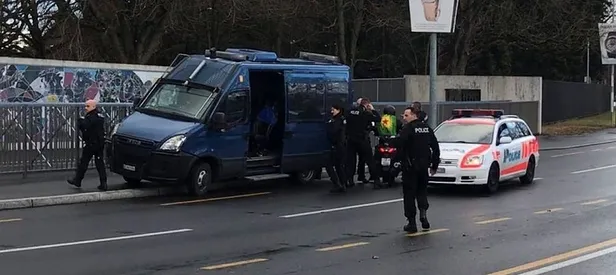 Türkiye'deki terör olaylarının protesto edildiği Birleşmiş Milletler (BM) Cenevre Ofisi önünde PKK terör örgütünün paçavrası ile provokasyon yapan kişi gözaltına alındı.