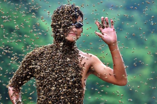 HEMEN hemen her ürünün çakmasını yaparak dünya ekonomisini sallayan Çin'den ilginç bir yarışma haberi geldi. Çin'de arıcılık yapan 42 yaşındaki Wang Dalin ile 20 yaşındaki Lu Kongjiang, arıların vücutlarını kaplama yarışması yaptı. İlginç görüntülere sahne olan yarışmada Wang Dalin, tam 26 kilogram arıyı vücudunda toplamayı başardı. Tehlikeli yarışmanın ödülü ise bir teneke bal oldu. Wang Dalin, "Bir an öleceğimi sandım" dedi.