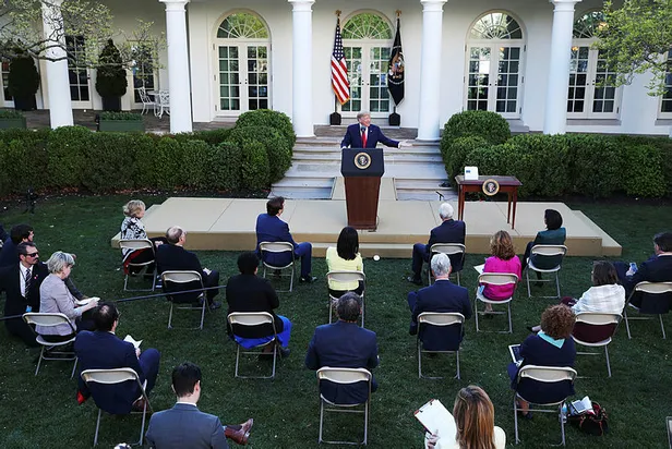 ABD Başkanı Donald Trump, Beyaz Saray'da koronavirüs salgınına ilişkin değerlendirmelerde bulundu.