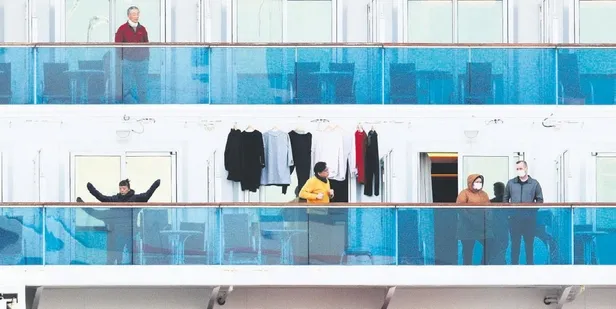 4 Şubat'tan bu yana Japonya Yokohama Limanı'nda demirlenip karantina altında tutulan 'Diamond Princess' isimli cruise gemisinde kriz devam ediyor. Yokohama Limanı'nda geçen hafta karantinaya alınan, 3 bin 700 civarında kişinin bulunduğu "Diamond Princess" adlı yolcu gemisinde Covid-19 tespit edilen kişi sayısı 174'e çıktı. Japonya Sağlık Bakanlığı'ndan yapılan açıklamada, bir karantina yetkilisinin yanı sıra gemideki 29 yolcu ve mürettebattan 10 kişide daha Covid-19'a rastlandığı, ülkede vaka sayısının 203'e yükseldiği ifade edildi. Karantinadaki gemide yaşanan ilaç sıkıntısı iddialarını yetkililer yalanlamıştı. Ancak yolcular balkonlarına ilaca ihtiyacımız var yazıları asmaya başladı. Gemide günlerdir karantina altında tutulan yolcuların kabinlerinden dışarıya çıkması yasak. Yolcular kabinlerindeki balkonlara çıkıp kendi imkanlarıyla yaptıkları flamaları asıyorlar. Bu karedeki görüntüde 'İlaç yok' yazıyor. Bazı yolcular ise, "Ölüyoruz, yardım edin" pankartı astı.