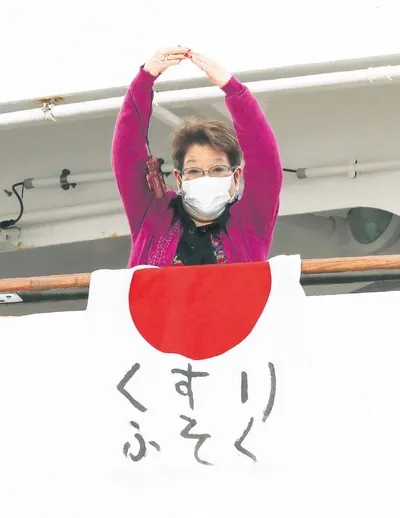 Tokyo'da Coronavirüs nedeniyle limanda karantinaya alınan 'Diamond Princess' adlı gemiden çığlıklar yükseliyor. Virüs tespit edilen yolcu sayısı 174 olurken, pankarta "Ölüyoruz, yardım edin" diye yazdılar.