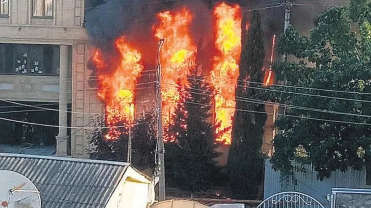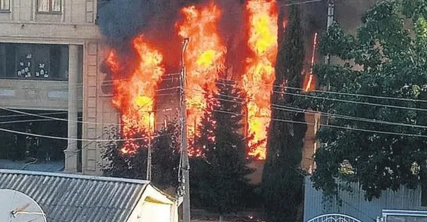 Çatışma sonrası sinagogda yangın çıkarken, itfaiye ekipleri alevlere müdahale etti.