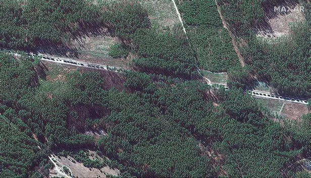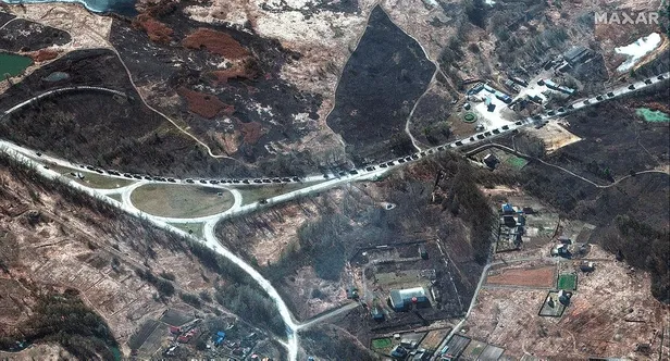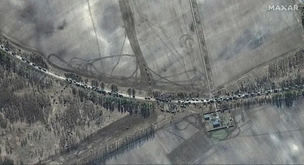 Gün içerisinde elde ettiği yeni görüntüleri servis eden şirket, konvoyun Kiev'e 27 mil (43 km) mesafedeki Antonov Hava Üssü'nden Ukrayna'nın Prisbyrsk kentinin kuzeyine kadar uzandığını kaydetti.