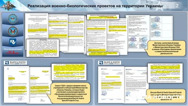 Kimyasal ve Biyolojik Savunma Kuvvetleri Komutanı İgor Kirillov, "Ukrayna topraklarında biyolojik silah bileşenleri üretildiğini düşünüyoruz. Rusya Savunma Bakanlığı, Ukrayna'daki laboratuvarların çalışanlarından aldığı, ABD ve NATO'lu müttefiklerinin Ukrayna'da askeri biyolojik programların uygulanmasıyla ilgili materyalleri incelemeye devam ediyor.