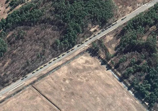 14 Mart tarihinde çekilen bir başka karede, Belarus'un güneyindeki Naroulia'daki bir otoyolda bir Rus konvoyu var.