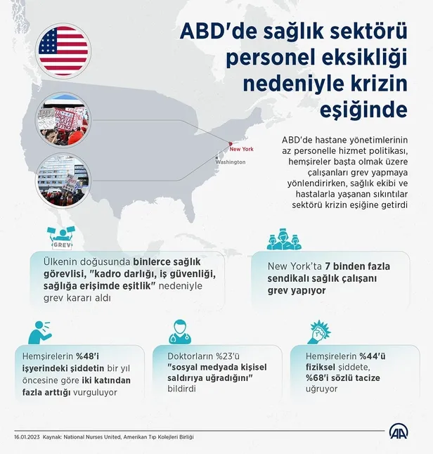 ABD'de hastane yönetimlerinin az personelle hizmet politikası, hemşireler başta olmak üzere çalışanları grev yapmaya yönlendirirken, sağlık ekibi ve hastalarla yaşanan sıkıntılar sektörü krizin eşiğine getirdi.