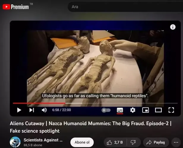 'Scientists Against Myths' YouTube kanalında yayınlar yapan bilim insanı Alexander Sokolov tarafından bir araya getirilen bir grup araştırmacı uzaylı olduğu öne sürülen kalıntıların aslında 'insan ve hayvan kemiklerinden oluşan bir karmaşadan' ibaret olduğunu iddia ediyor.