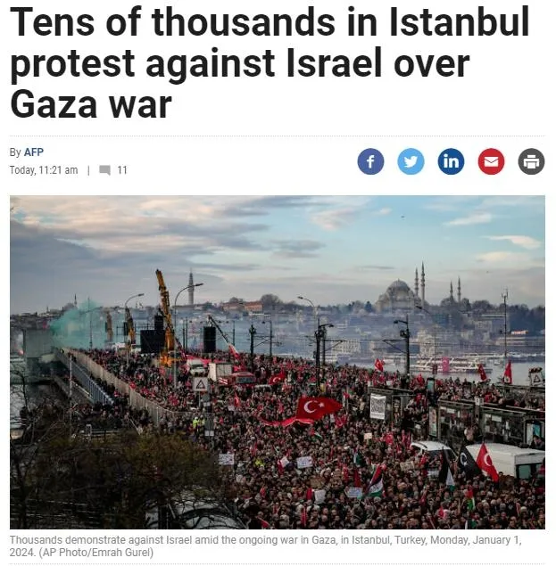 İstanbul’da Gazze için düzenlenen “Şehitlerimize Rahmet, Filistin’e Destek, İsrail’e lanet” mitingi dünya basınında geniş yankı buldu. Batı basını Galata Köprüsü’nde düzenlenen ve on binlerce kişinin katıldığı yürüyüşü yakın takibe alırken soykırımcı İsrail’in gazetesi ise kirli bir provokasyona imza attı.
