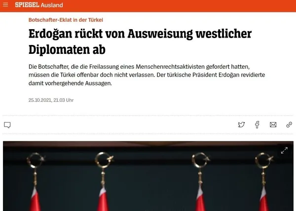 Yazıda, "Sınır dışı etme tehdidi ciddi ekonomik sorunlara sebep olabilecek ve NATO içerisinde dağılmaya sebep olabilecekti. Erdoğan, Pazartesi günü 10 büyükelçiyi sınır dışı etme kararından geri adım attı ve analist ve diplomatlara göre Türkiye'ye ekonomik felaket getirecek ve NATO ittifakına zarar verecek diplomatik fırtınadan kurtuldu. Hesaplı bir hareketle 10 ülke büyükelçisi Viyana Sözleşmesi'ne uyduklarını açıklayan ifadeler kullandı ve bu da Erdoğan tarafından olumlu karşılandı" denildi.