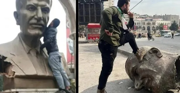 Haberde, kanlı rejimin sembolü olarak görülen Hafız Esed heykellerinin yıkıldığı belirtildi.