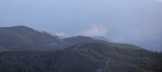 Bölgeden yükselen dumanlar, Hatay'ın Suriye sınırındaki Yayladağı ilçesinden de görülüyor.