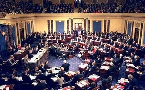 Bill Clinton'ın azil soruşturması oturumlarından bir kare. (1999)