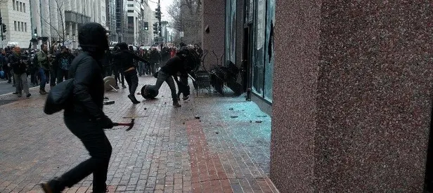 Tören öncesi bir araya gelen öfkeli gruplar, Washington sokaklarını savaş alanına çevirdi. Trump karşıtı slogan atan göstericiler, çevredeki mağazaların camlarını kırdı.