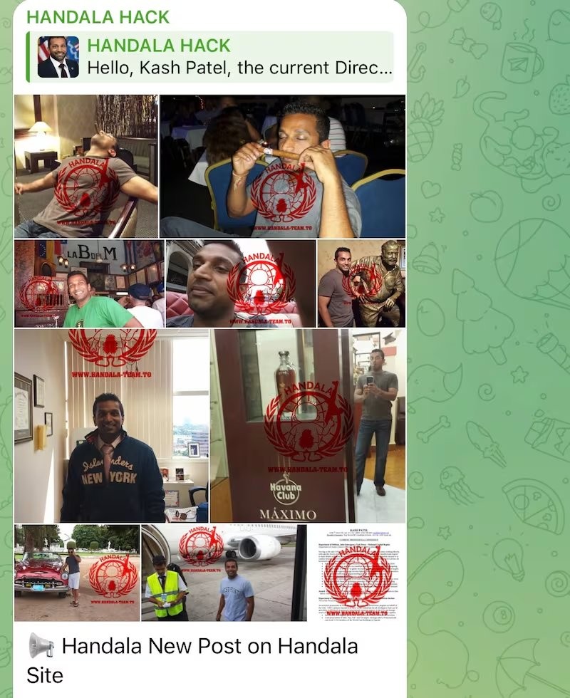 İran yanlısı olduğu belirtilen Handala Hack Team adlı grup, Patel'e ait e-postalar, belgeler ve çeşitli kişisel bilgileri ele geçirdiğini ileri sürdü. Grup, internet sitesinde yaptığı paylaşımda, FBI Direktörü'ne ait olduğu iddia edilen bazı içerikleri de yayımladı.