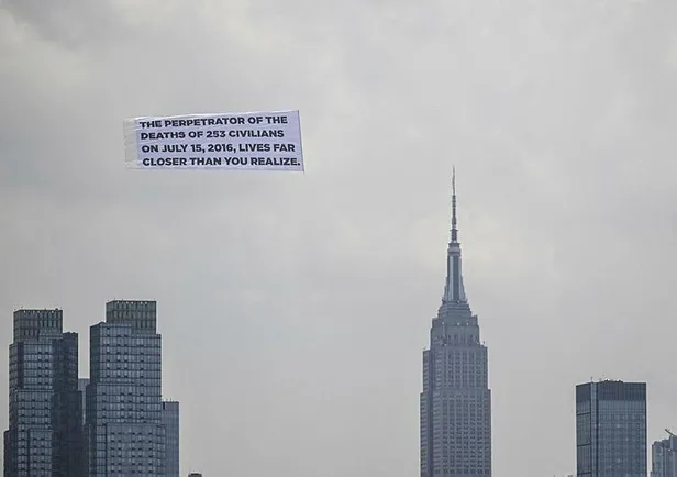 New York'un ardından Pensilvanya semalarına yönelen bir uçak, kuyruğuna asılı dev pankartta, "15 Temmuz 2016'da 253 masumun canına kıyanlar, size tahmin ettiğinizden çok daha yakın bir yerde yaşıyor." ifadelerini taşıyan mesajı yaydı.