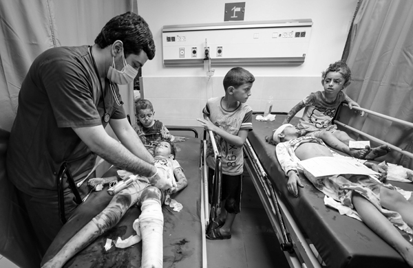 "Bugün çocuklarımız evlerine bomba düştüğünde tanınmak için isimlerini avuçlarına yazıyorlar. Erkeklerimiz, kimlikli ve kimliksizleri gömmek için toplu mezarlar kazıyorlar. Kadınlarımız vücutlarındaki yanıkları sabunla temizliyor çünkü hastanelerde antiseptik kalmadı. Kurtarma ekiplerimiz hayatta kalabilmek için kana bulanmış ekmek yiyorlar. Sağlık görevlilerimiz hayat kurtarırken öldürüldü. Yaşlılarımız susuzluktan enkaz altında içecek su arıyor. Ailelerimiz yas tutma hakkından mahrum bırakılıyor.