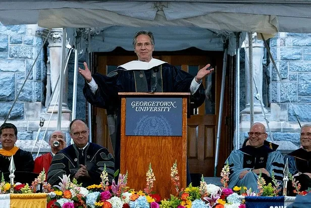 Blinken'ı atlayarak sahnedeki diğer kişilerle el sıkışan öğrencinin o esnadaki konuşmalarında ABD yönetiminin politikalarını eleştirdiği öğrenildi.
