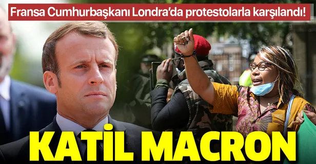 Fransa Cumhurbaşkanı Londra'da protestolarla karşılandı: Katil Macron!