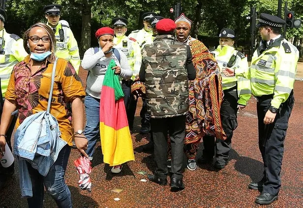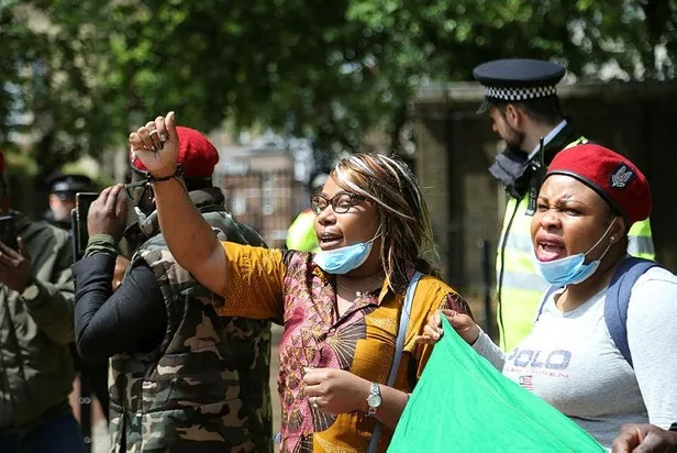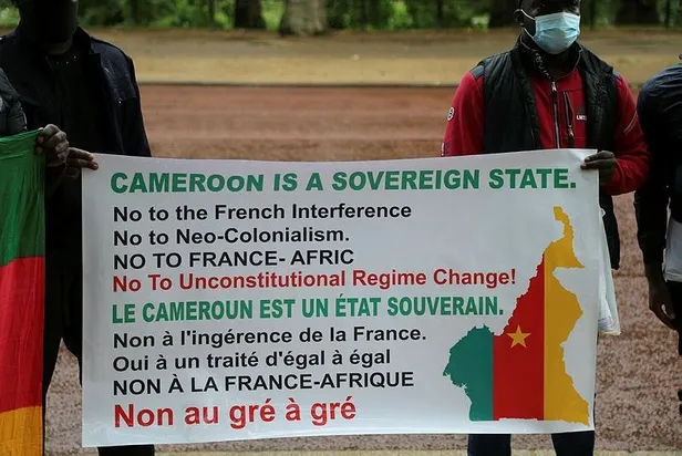 Öte yandan Macron'un Prens Charles ve Johnson görüşmelerinin gerçekleştirildiği mekanların dışında toplanan bir grup Kamerun vatandaşı, Fransız lideri protesto etti.
