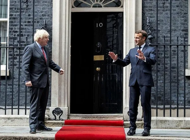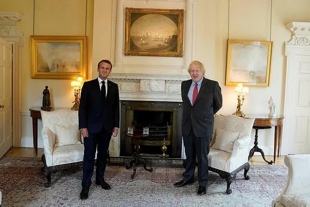 İngiltere Başbakanı Boris Johnson ile Fransa Cumhurbaşkanı Emanuel Macron Londra'da bir araya gelirken, Fransız lider kentte protestoyla karşılandı.