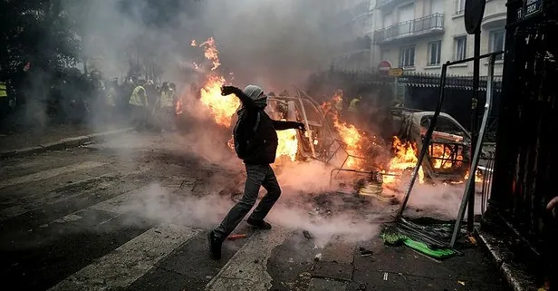 Göstericiler, Paris'in caddelerinde çok sayıda araç ve çöp bidonunu ateşe vermiş, polislere taş ve şişe fırlatmıştı. Paris sokaklarında sık aralıklarla ses bombaları duyulmuştu.