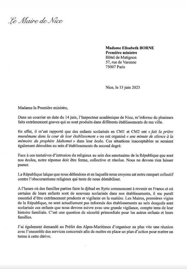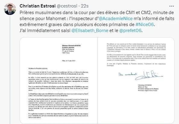 Yaşanan olay ülke gündeminde büyük yankı bulurken, Belediye Başkanı Christian Estrosi Başbakan'a gönderdiği mektubu sosyal medya hesabından yayınladı.