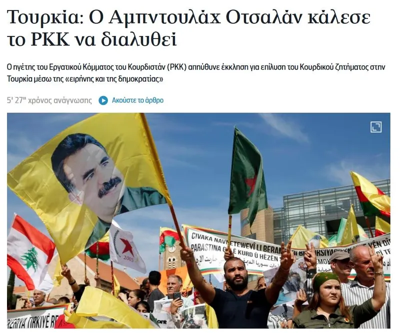 Yunan Kathimerini Öcalan'ın çağrısının ardından AK Parti Genel Başkan Yardımcısı Efkan Ala'nın PKK'nın silah bırakıp kendini feshetmesi halinde Türkiye'nin "zincirinin kırılacağına" yönelik sözlerine vurgu yaptı.