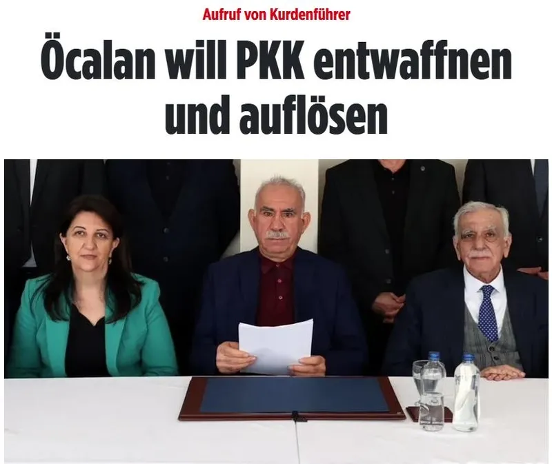 Alman Bild ise "Öcalan PKK'yı silahsızlaştırmak ve tasfiye etmek istiyor" başlığını kullandı.