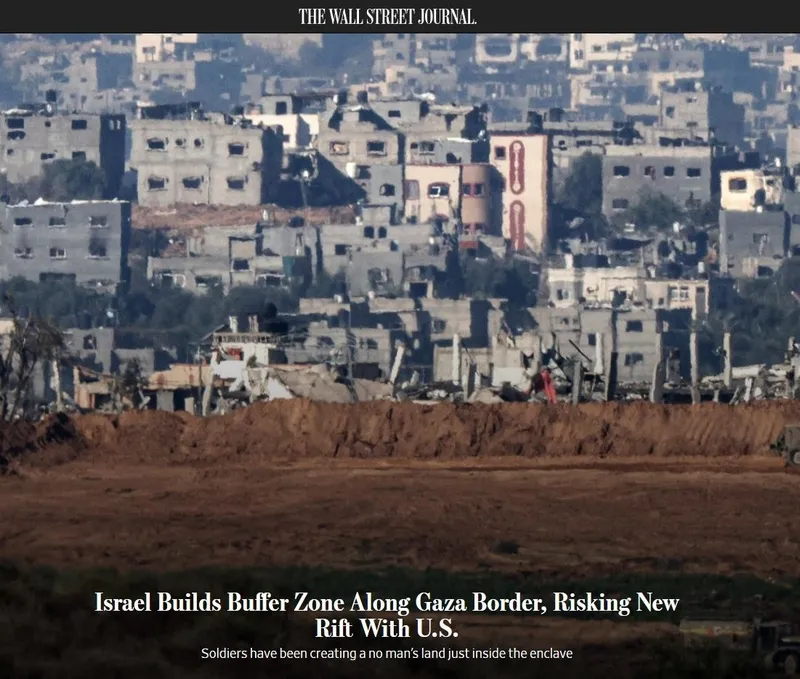 Wall Street Journal, ABD'nin soykırımcı İsrail'in tampon bölge çalışmaları karşısında hayal kırıklığının giderek arttığını belirtiyor. ABD'li yetkililer Gazze sınırının sahipsiz bölgeye dönüştürülmesinin, Arap hükümetlerini Gazze Şeridi'nin yeniden inşasına yardım etmeye ikna etmeyi zorlaştıracağını belirtiyor.