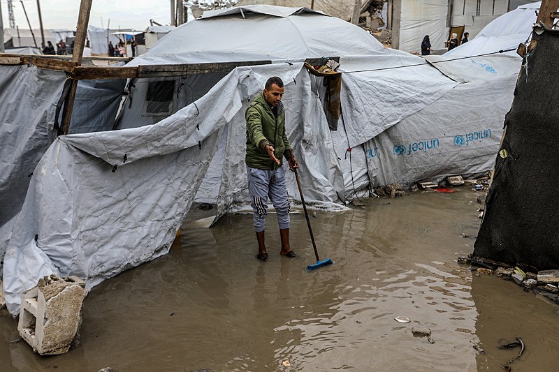Filistin topraklarını 14 Kasım'dan bu yana etkisi altına alan soğuk hava dalgası ve yoğun yağış, Gazze'nin birçok bölgesinde binlerce yerinden edilen kişinin çadırlarını su altında bıraktı.