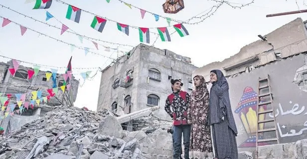 Gazze'de Ramazan! Yıkılan evlerinin yanına süslemeler astılar